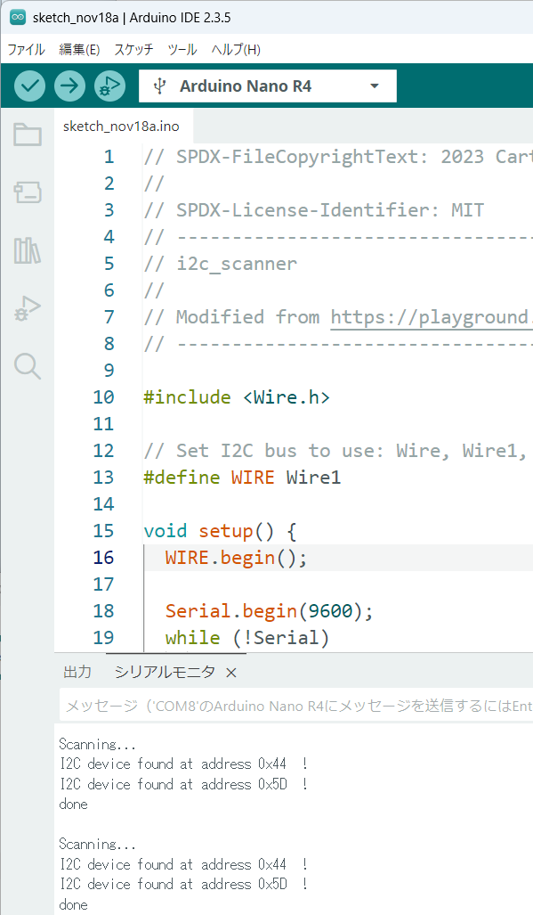 Arduino Nano R4の活用 ⑩ I2C 湿度・温度センサHS3003 Wire①