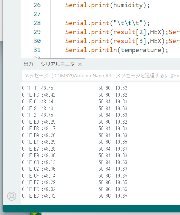 実行している様子です。左が湿度、右が温度です。