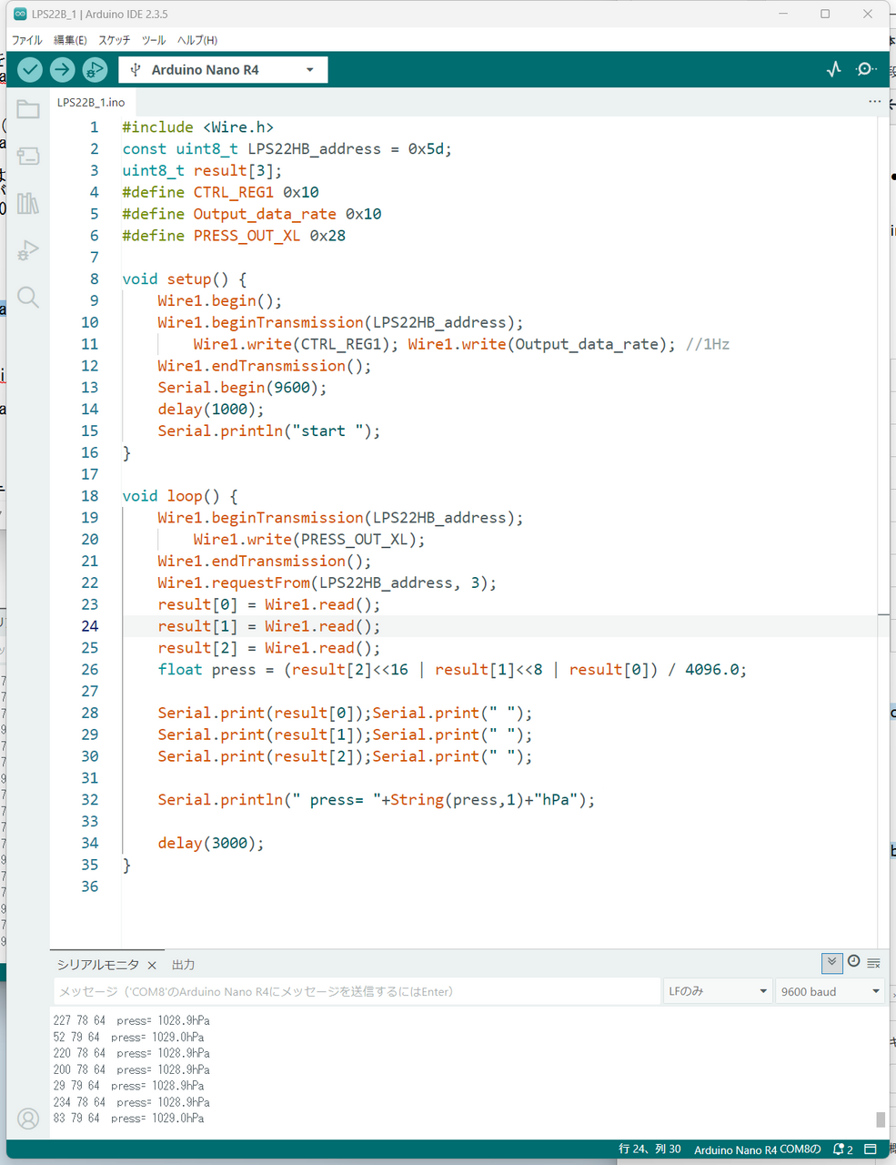 Arduino Nano R4の活用 ⑨ I2C LPS22HBのスケッチ スケッチの説明<第4回>