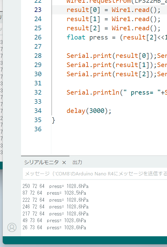 Arduino Nano R4の活用 ⑧ I2C LPS22HB Wire②