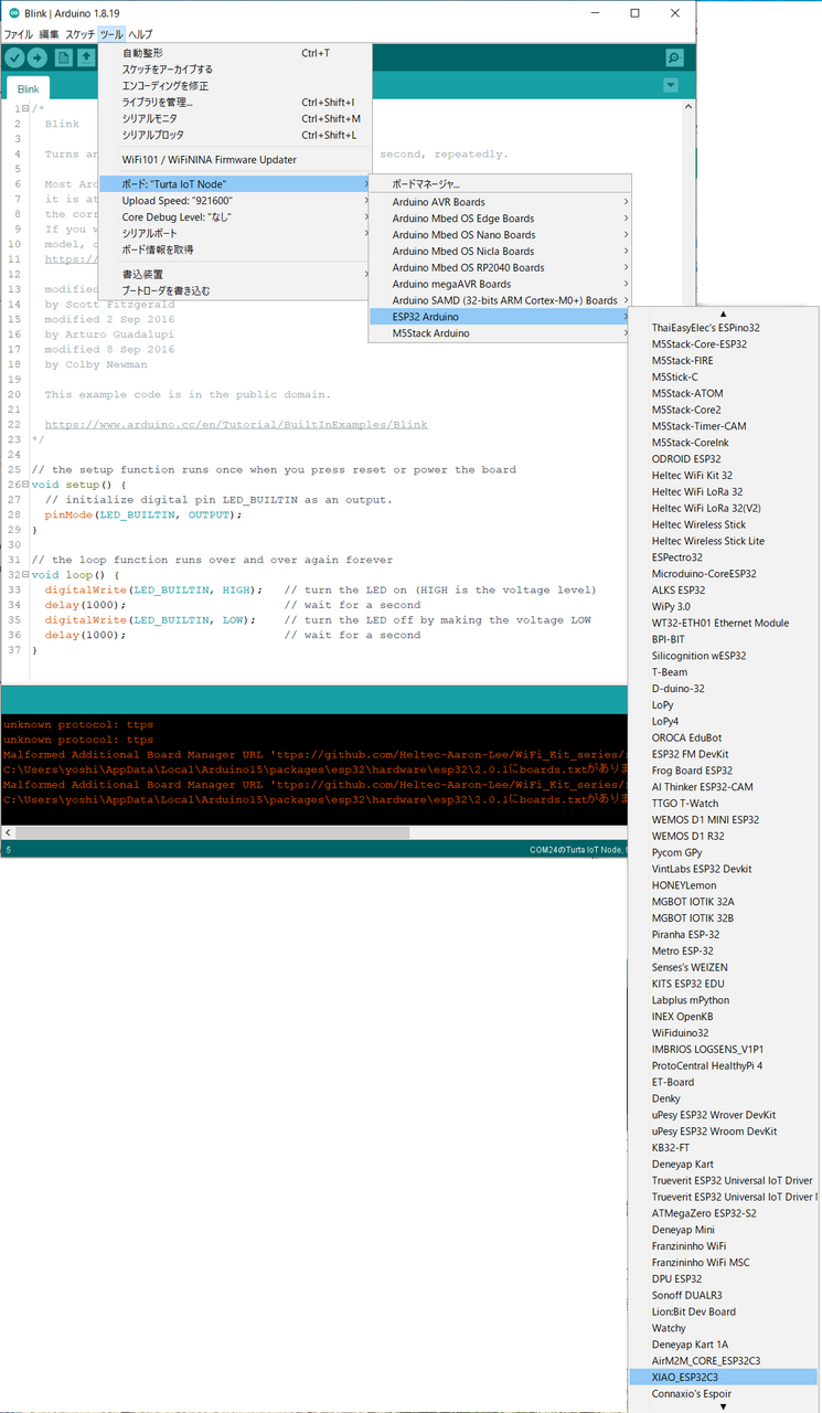 Seeed Studio XIAO ESP32C3でBLE ① Arduino IDEで準備