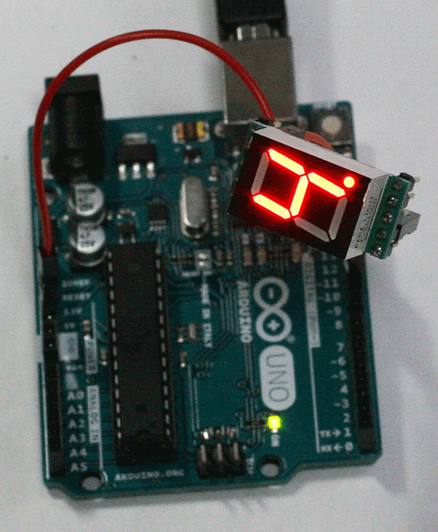 Arduinoで温度を測定したらキャラクタ表示LCDを利用して測定結果を表示しました。液晶表示器自体は暗いです。バックライト付きやOLEDであれば、表示文字は鮮明になります。時計や温度、電圧を表示するだけなら、数値だけでも十分です。7セグメントLEDという表示器があります。赤色、黄色、青色など明るい発色なので、遠くからも視認性がよいです。