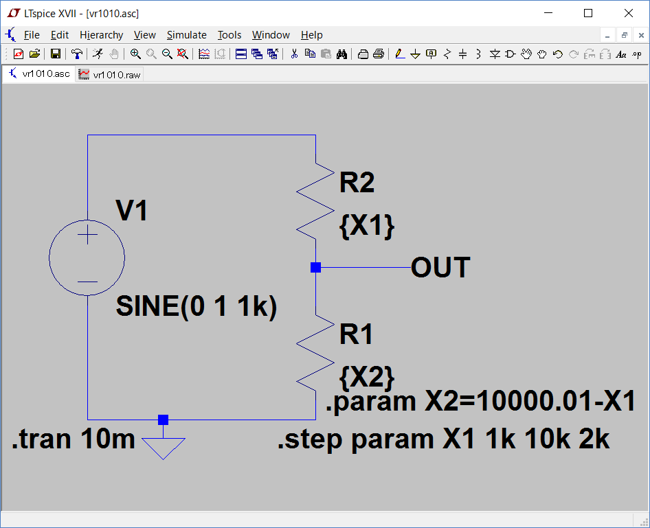 LTspiceでボリュームを作る(1)抵抗値比で分圧