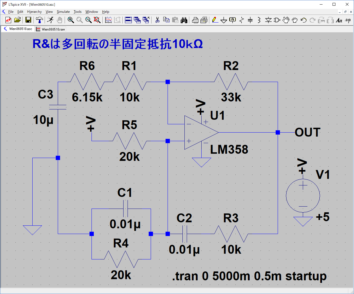 初心者のためのLTspice入門 ウィーン・ブリッジ発振回路のOPアンプ、フィルタの役割 (4) ウィーン・ブリッジ発振回路を単一電源で動作させる