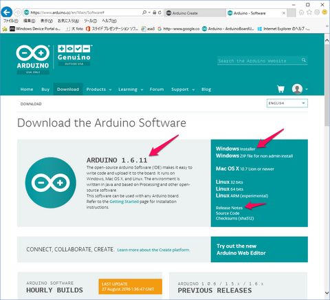 Arduino IDEの1.6.11へのバージョンアップとArduino Createの公開 (1) バージョンアップ