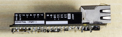 ピン・ソケットはUno R3と同じで、次に示すようにディジタル・ピンが8ピン、10ピン、また電源のピンソケットが8ピン、アナログ入力が6ピンです。