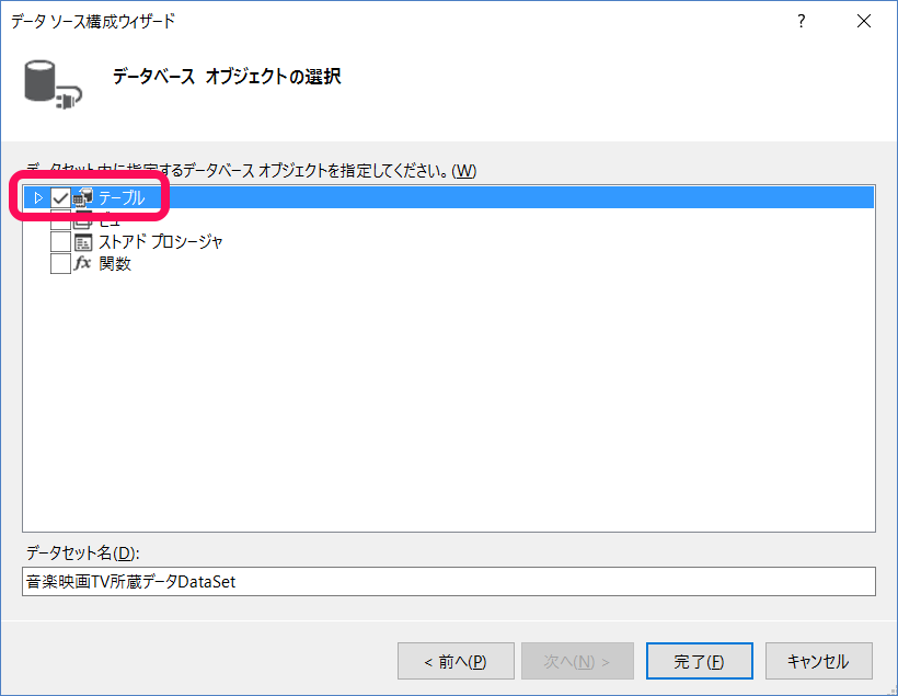 テーブルの欄をチェックすると、次に示すように個々のすべてにチェックが入り、利用できるようになります。