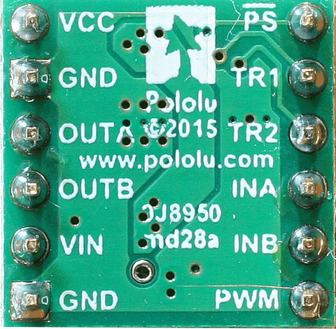 入力INAにPWM信号を、入力INBにdirection信号を入れる接続です。PWM端子を3.3Vにつなぎ、クラスを使うとき、引数にpwm=Falseを追加します。