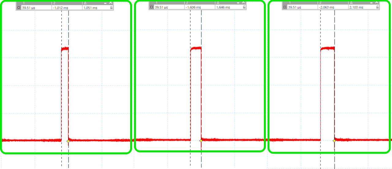 min()、mid()、max()の周期です。それぞれ1.05ms、1.65ms、2.1msでした。