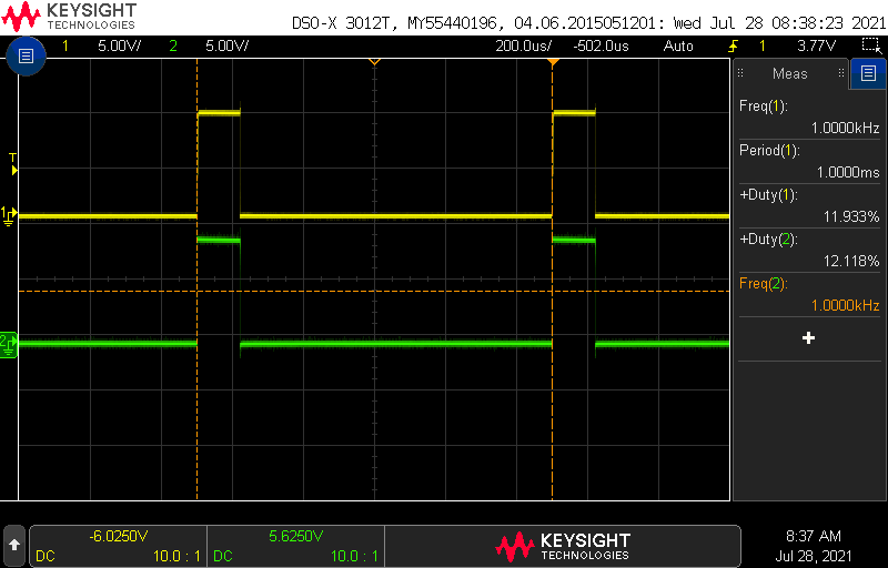 Aはパルスは正、Bは反転させました。デューティ比はduty_factor、デッド・タイムはdead_timeで設定します。
