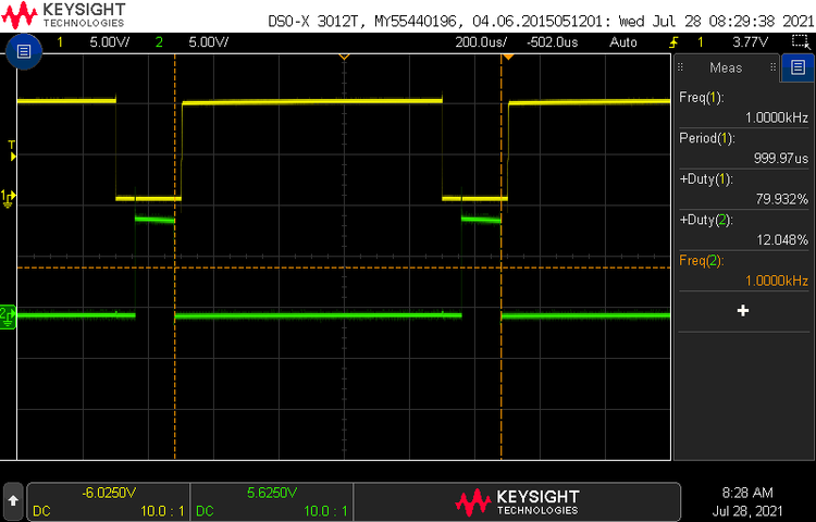 黄色がINa、緑がINbです。デューティ比20%で波形を作っています。