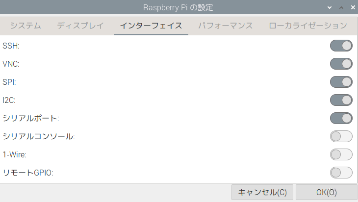 いつものように、I2CやSPIなどを有効に、リブートします。
