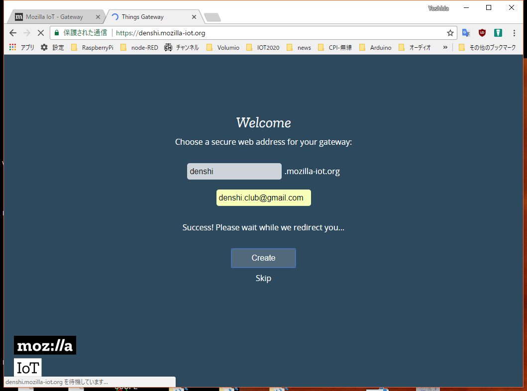 PCのブラウザから、URLの欄にhttp://gateway.local/でアクセスします。ラズパイで名前解決のavahiが動いているのでアクセスできるはずですが、先ほどの画面にDHCPからふられたIPアドレスが表示されているので、そのアドレスを直接入れてもかまいません。